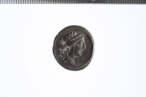 Busto drappeggiato di Venere a d. con corona d'alloro e diadema. Bordo perlinato.