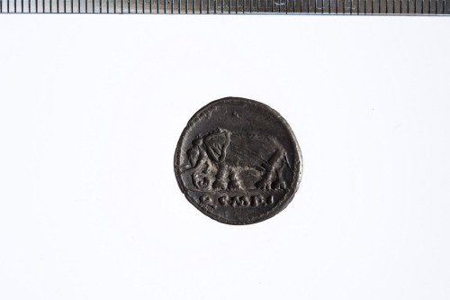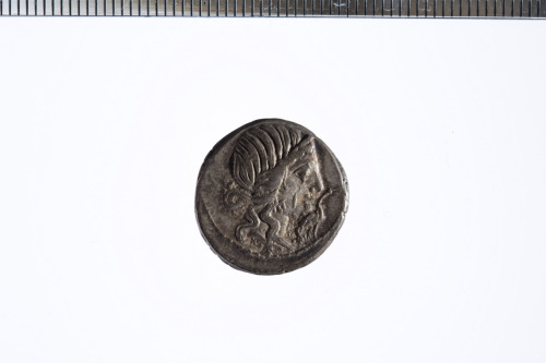 Testa diademata della Pietas a d.; davanti, un uccello dal collo lungo (ibis?); c.p.