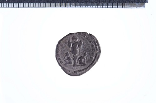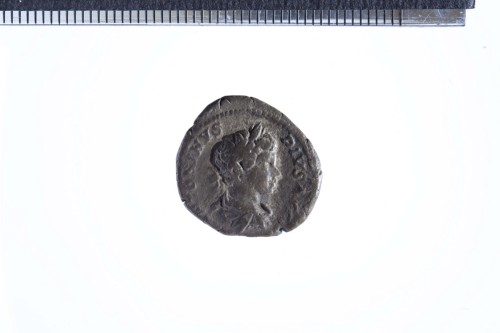 Busto laureato di Caracalla a d., con paludamentum, di tre quarti di spalle; contorno perlinato.