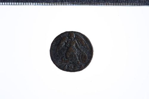 Busto elmato di Costantipoli a s. con scettro