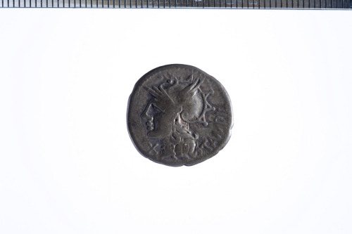 Testa galeata di Roma a s. con copricollo di pendenti; sotto il mento simbolo di valore X; c.p.