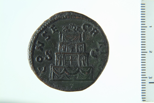 Testa nuda di Antonino Pio a d.; contorno perlinato.