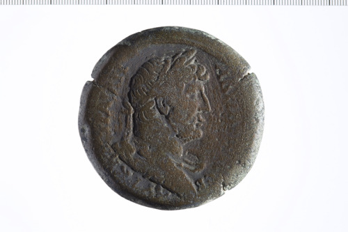 Busto laureato di Adriano a d., paludato, di tre quarti, di spalle.