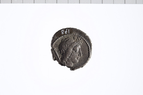 Testa di Genius popoli Romani a d. con scettro sulla spalla. Cerchio perlinato.
