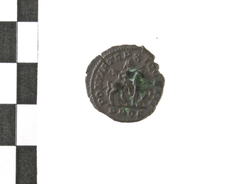 Testa laureata di Antonino III a d.; contorno perlinato.
