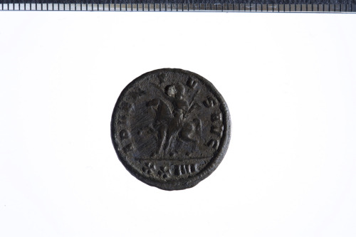 Busto radiato, elmato e corazzato di Probo a s., con lancia e scudo; contorno perlinato.