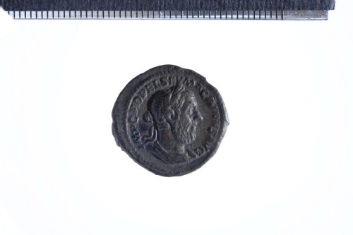 Busto laureato e corazzato di Macrino a d., di tre quarti in avanti; contorno perlinato.