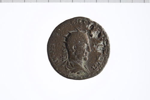 Busto radiato di Traiano Decio a d., paludato, corazzato, di tre quarti, di spalle.