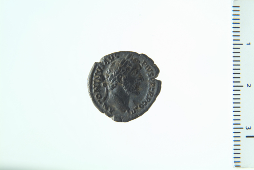 Testa laureata di Antonino Pio a d.; contorno perlinato.