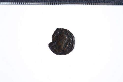 Busto drapp. e laur. di Costantino a s. con crnucopia su spalla s.