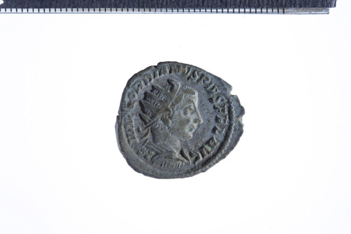 Busto radiato di Gordiano III a d. con corazza, di tre quarti di spalle; contorno perlinato.