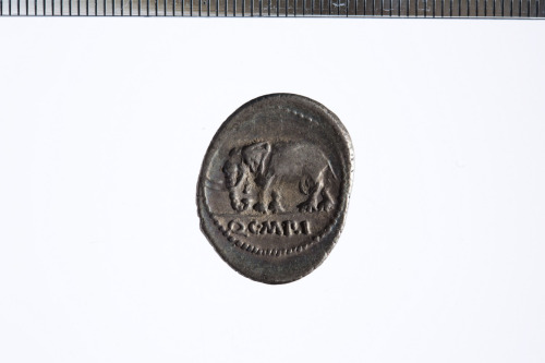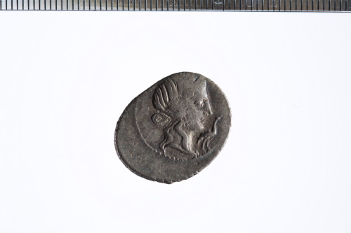 Testa diademata della Pietas a d.; davanti, un uccello dal collo lungo (ibis?); c.p.