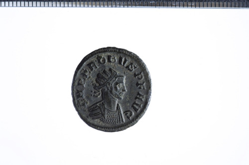 Busto radiato e corazzato di Probo a d.; contorno perlinato.