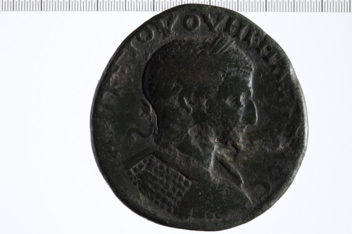 Busto di Massimino I laureato, drappeggiato e corazzato.
