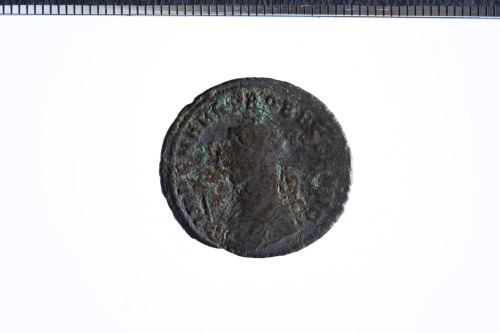 Busto radiato con manto imperiale di Probo a s., con scettro a forma di aquila; contorno perlinato.