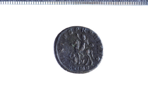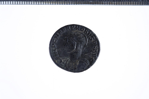 Busto elmato e corazzato di Probo a s., con lancia e scudo; contorno perlinato.