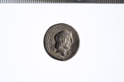 Testa laureata di Apollo a d. con i capelli fermati da un nastro. Bordo perlinato.