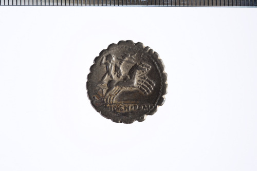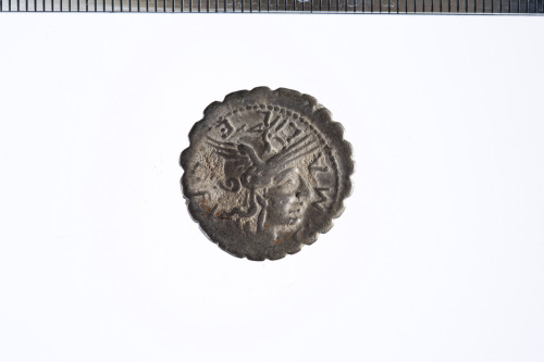 Testa di Roma a d. con elmo attico, dietro simbolo di valore X