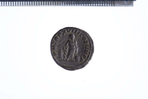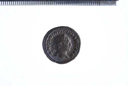 Testa laureata di Caracalla a d.; contorno perlinato.