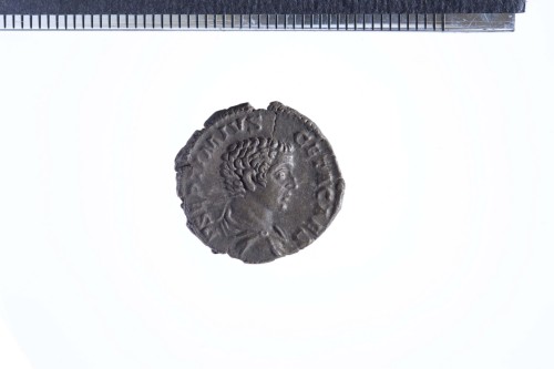 Busto a testa nuda di Geta a d., con paludamentum; contorno perlinato.