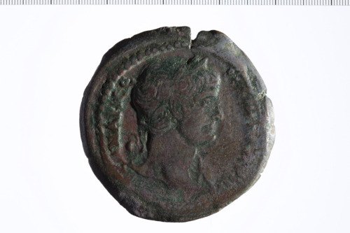 Testa laureata di Traiano a d.