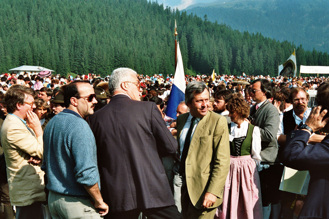 Fedeli attendono l'arrivo del Papa Giovanni Paolo II a Pramarino