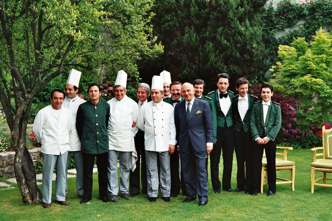 Lo Staff di servizio all'Hotel Villa Cipriani di Asolo, posa per una fotografia di gruppo in occasione della visita di Sua Maestà