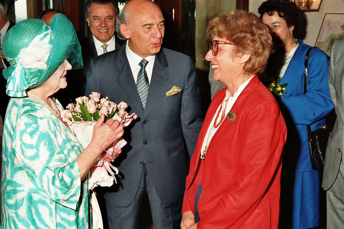 La Regina Madre lascia l'Hotel Villa Cipriani di Asolo, saluto e riverenze degli ospiti presenti