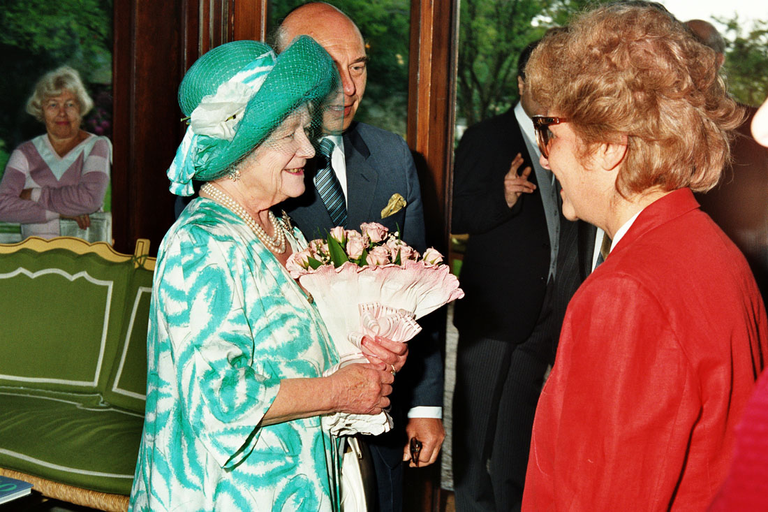 La Regina Madre lascia l'Hotel Villa Cipriani di Asolo, saluto e riverenze degli ospiti presenti