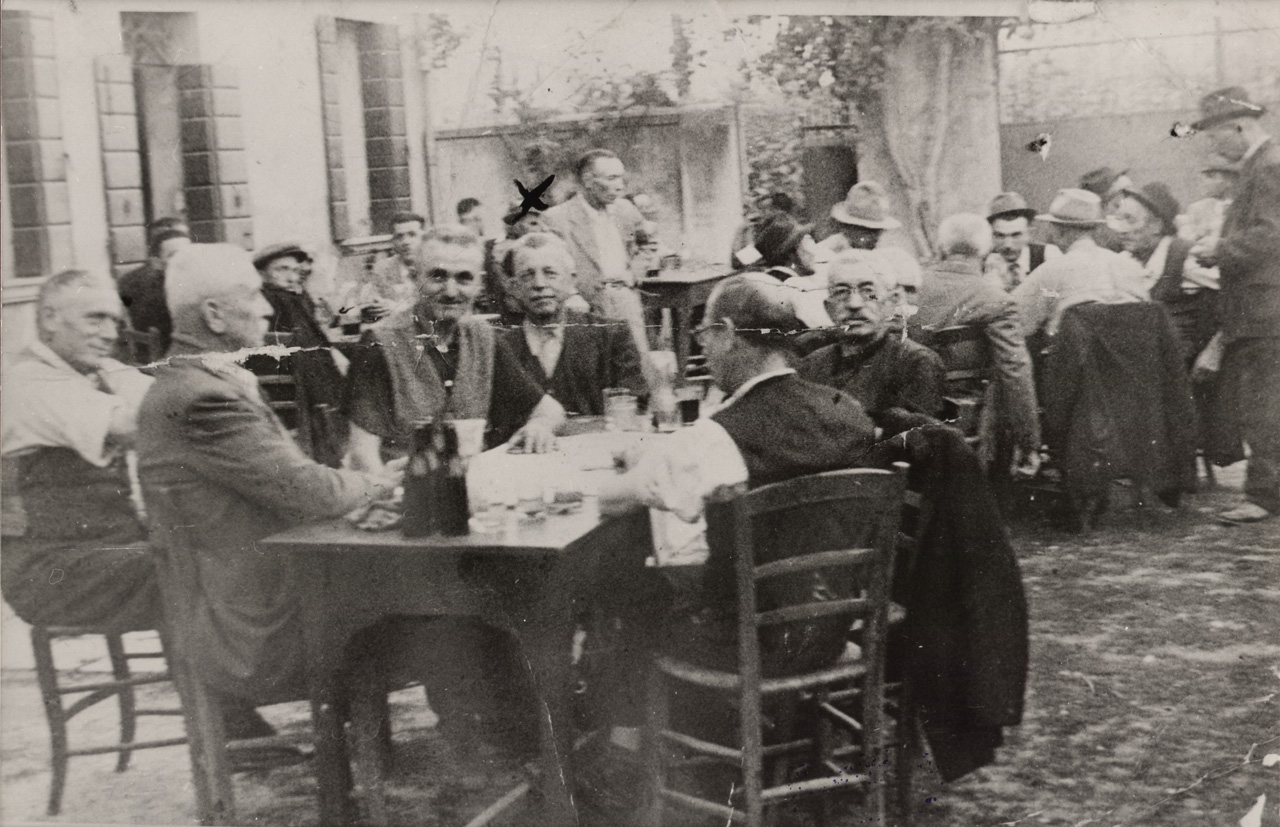 Battaglia Terme: foto di un gruppo di barcari all'osteria dalla Cappellara negli anni Trenta del 1900.