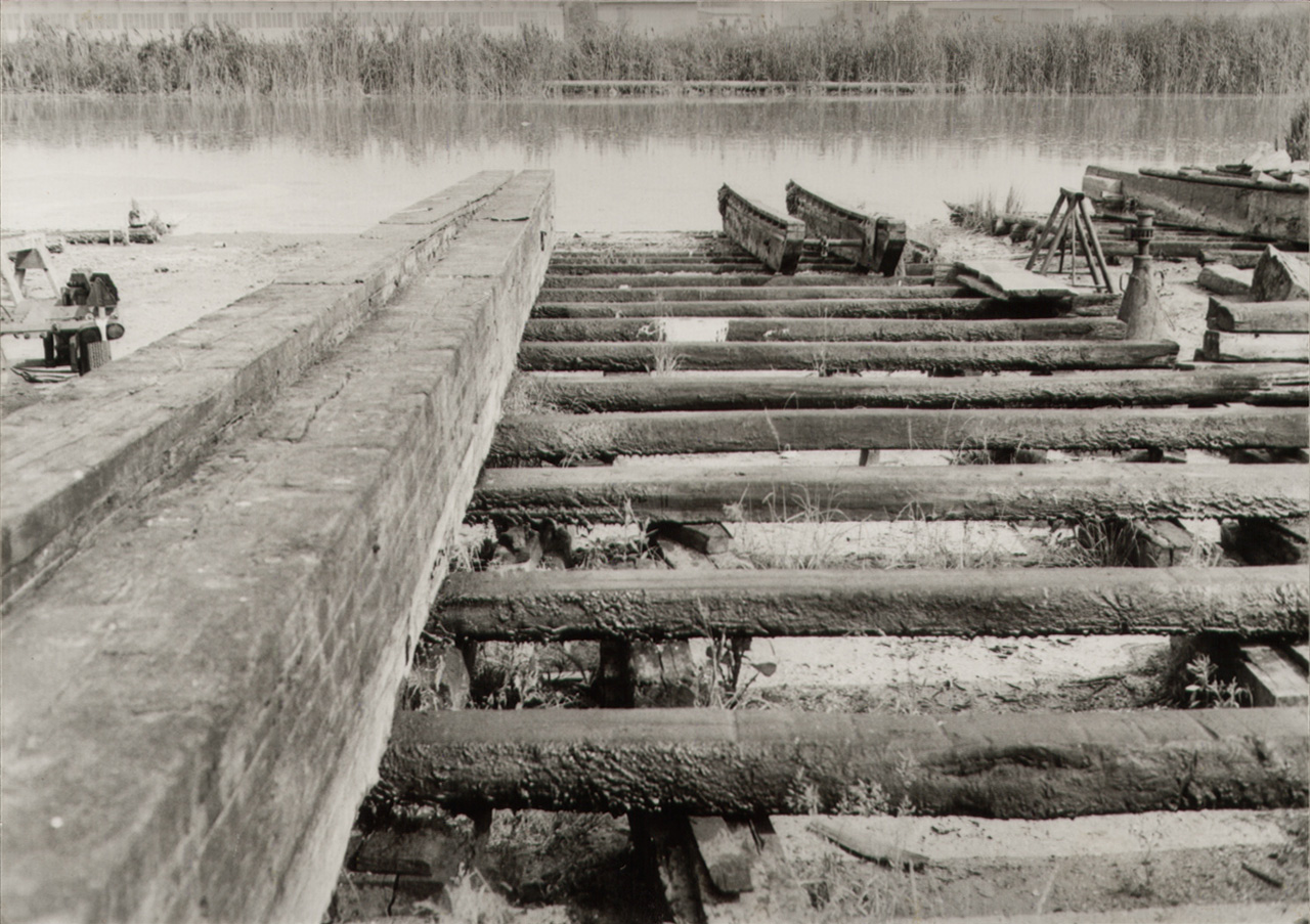 Loreo: si osserva l'esterno del cantiere (squero) dei F.lli Doni; nell'immagine si vede un particolare del piano di alaggio, cioè dello scivolo per il varo e l'alaggio delle imbarcazioni.