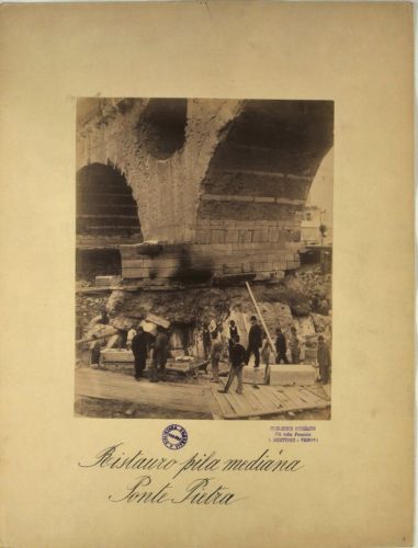 Verona: la ripresa fotografica è stata realizzata all'interno del cassero costruito per la ristrutturazione della pila mediana del Ponte Pietra.