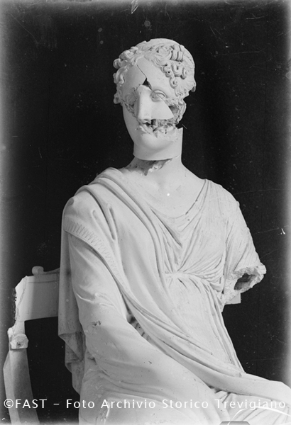 La Musa Polimnia di Antonio Canova: Possagno Gipsoteca. Calco in gesso della statua di Vienna, opera danneggiata dagli eventi bellici,che si verificarono a partire dalla metà di novembre del 1917 e nel corso del 1918 a Possagno.