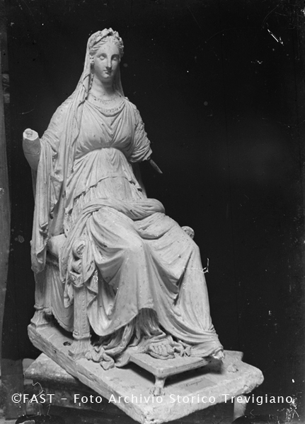 La Concordia di Antonio Canova: Possagno, Gipsoteca. Modello in gesso conclusivo degli studi della Concordia in tutto simile alla statua di Parma eccetto che nel volto, opera danneggiata dagli eventi bellici,che si verificarono a partire dalla metà di novembre del 1917 e nel corso del 1918 a Possagno.Fa parte delle opere canoviane ripristinate da Stefano e Siro Serafin dal 1920 al 1922.