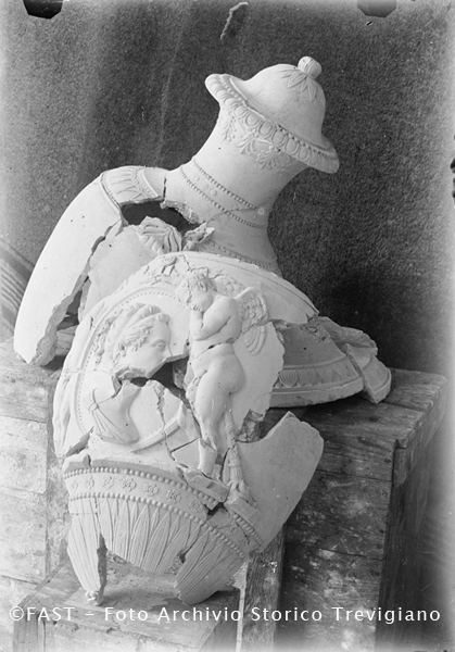 Vaso cinerario della Contessa Lodovica Callemberg di Antonio Canova. Possagno, Gipsoteca. Calco in gesso, opera danneggiata dagli eventi bellici, che si verificarono a partire dalla metà di novembre del 1917 e nel corso del 1918 a Possagno.