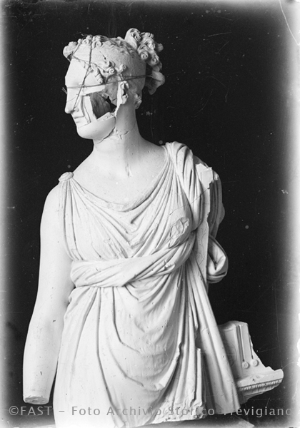 Tersicore di Antonio Canova. Possagno, Gipsoteca. Modello in gesso della statua, opera danneggiata dagli eventi bellici, che si verificarono a partire dalla metà di novembre del 1917 e nel corso del 1918 a Possagno.