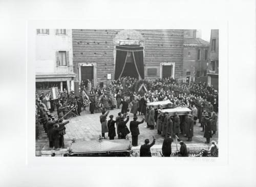 Venezia, Campo San Pantalon. Funerali di Antonio Marras e Luxardo: saluto romano rivolto ai due feretri.