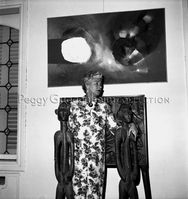 Servizio fotografico: Peggy Guggenheim con vestito bianco a motivo floreale a Palazzo Venier