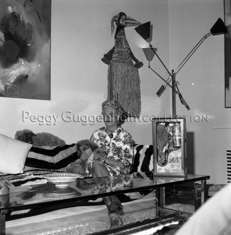 Servizio fotografico: Peggy Guggenheim con vestito bianco a motivo floreale a Palazzo Venier