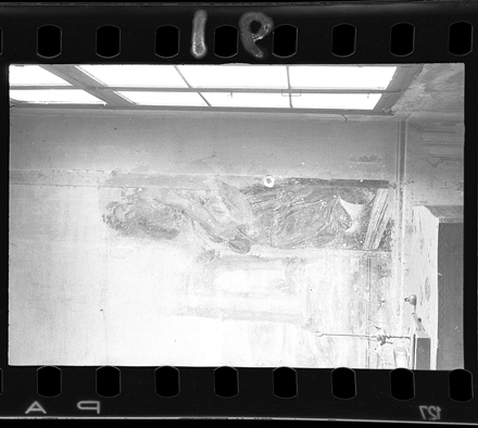 Particolare della decorazione a fresco della sala (parete destra, angolo verso la facciata) di Villa Piacentini (Cornaro-Piacentini-Tiepolo-Chiminelli) con statua della Fortezza