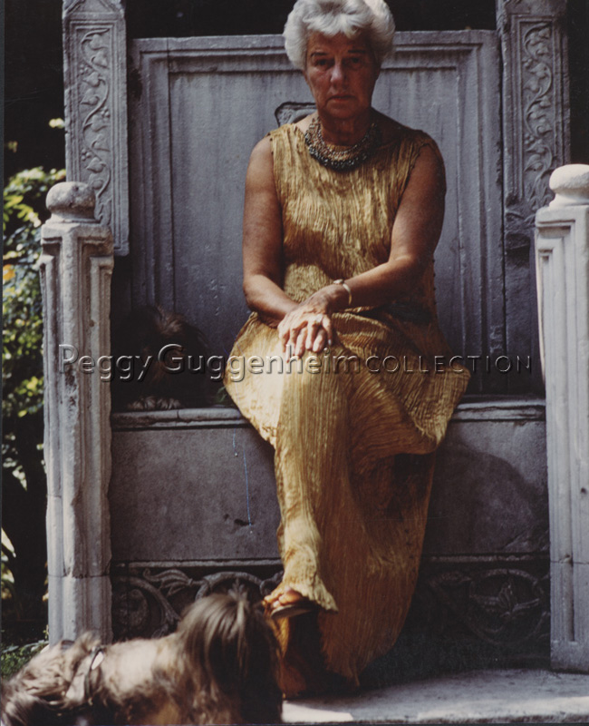 Servizio fotografico: Peggy Guggenheim con vestito di Fortuny sul trono bizantino