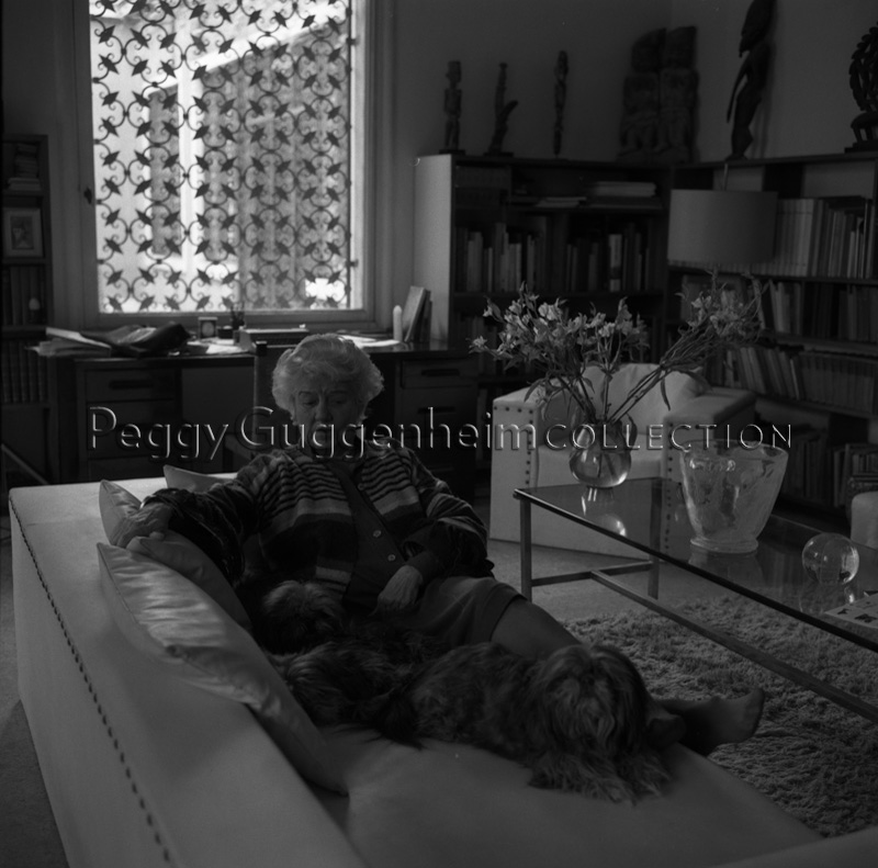 Servizio fotografico: Peggy Guggenheim distesa sul divano a Palazzo Venier