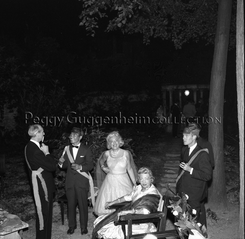 Festa a Palazzo Venier dei Leoni a Venezia negli anni cinquanta. Si riconoscono a sinistra Charles Briggs, l'uomo con i capelli brizzolati, e le sorelle Casellati in primo piano.