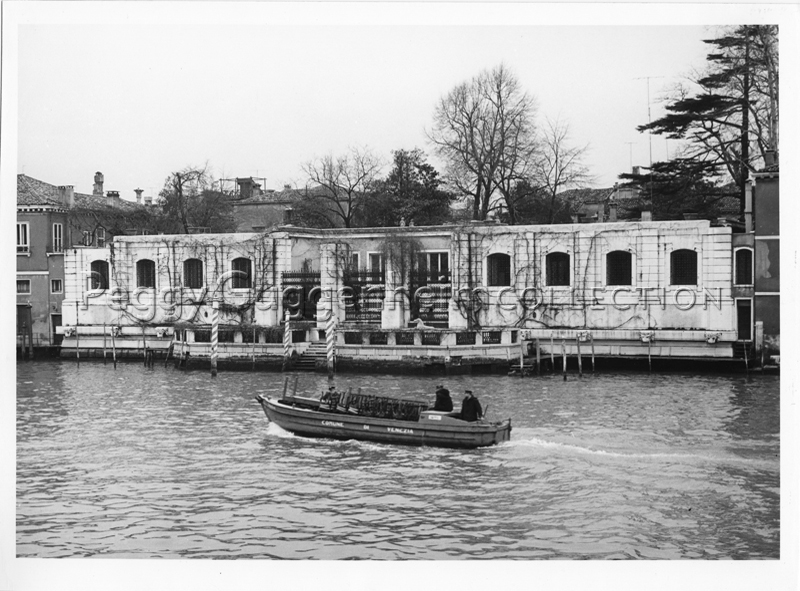 La facciata del Palazzo Venier dei Leoni di Venezia che si affaccia sul canale. Il palazzo è ripreso dall'alto negli anni compresi tra il 1962 e il 1966. Sulla terrazza si possono vedere i due cavalli provenienti da Corfù (Peggy Guggenheim Collection, PG259a-b).