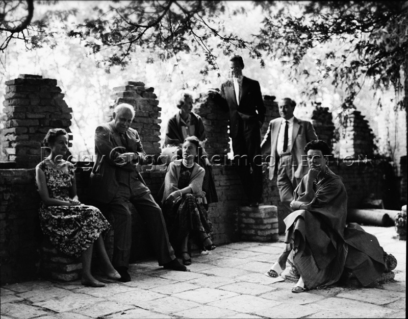 Peggy Guggenheim, a destra, ospite di alcuni amici a Villa Condulmer, a Zerman di Mogliano Veneto. Anni '50.