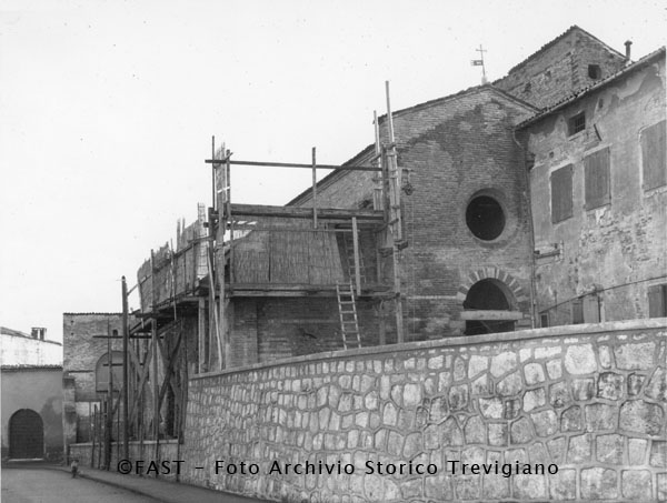 Dal 1810 tutto il complesso di San Silvestro, demaniato, diventa caserma: questa situazione lo condanna a due secoli di progressivo degrado ancora visibile nell'immagine qui schedata. La fotografia documenta, con ogni probabilità, le primissime fasi di risanamento dell'edificio, avviate a partire dagli anni Cinquanta del Novecento. Oggi l'intera facciata appare liberata, in luogo del rosone centrale è stata ricollocata l'originaria piccola bifora, il fianco è percorribile lungo un camminatoio.