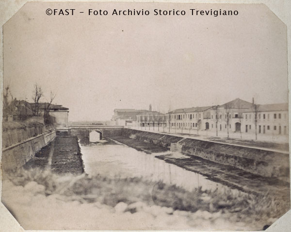 Treviso, il canale che costeggia le Mura, dai Bastioni San Marco verso Porta Santi Quaranta.