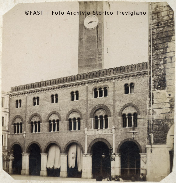 Treviso, il Palazzo della Prefettura in Piazza dei Signori, e la inferiore della torre civica.
