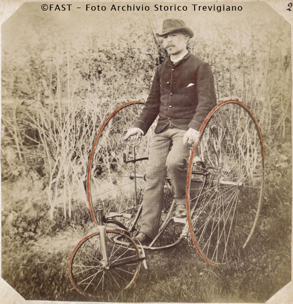 Albino Bertolini sul suo triciclo inglese (sistema Howe).