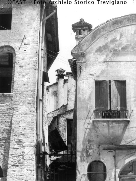 Treviso, case in Via Palestro un angolo di Casa dei Carraresi e dell'edificio del "Corder".